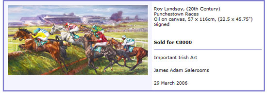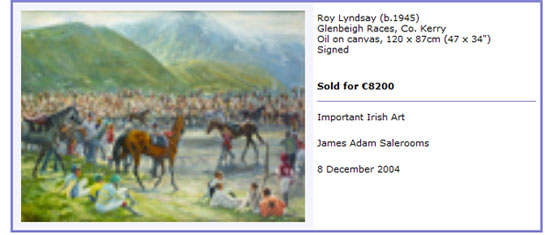 Roy's works are sold mainly at auction with Bonham's London, James Adams, DeVere Whites of Dublin, Sotheby's of London. Details of upcoming auctions coming soon.