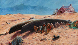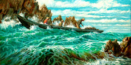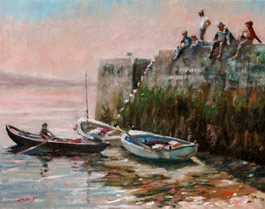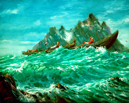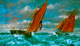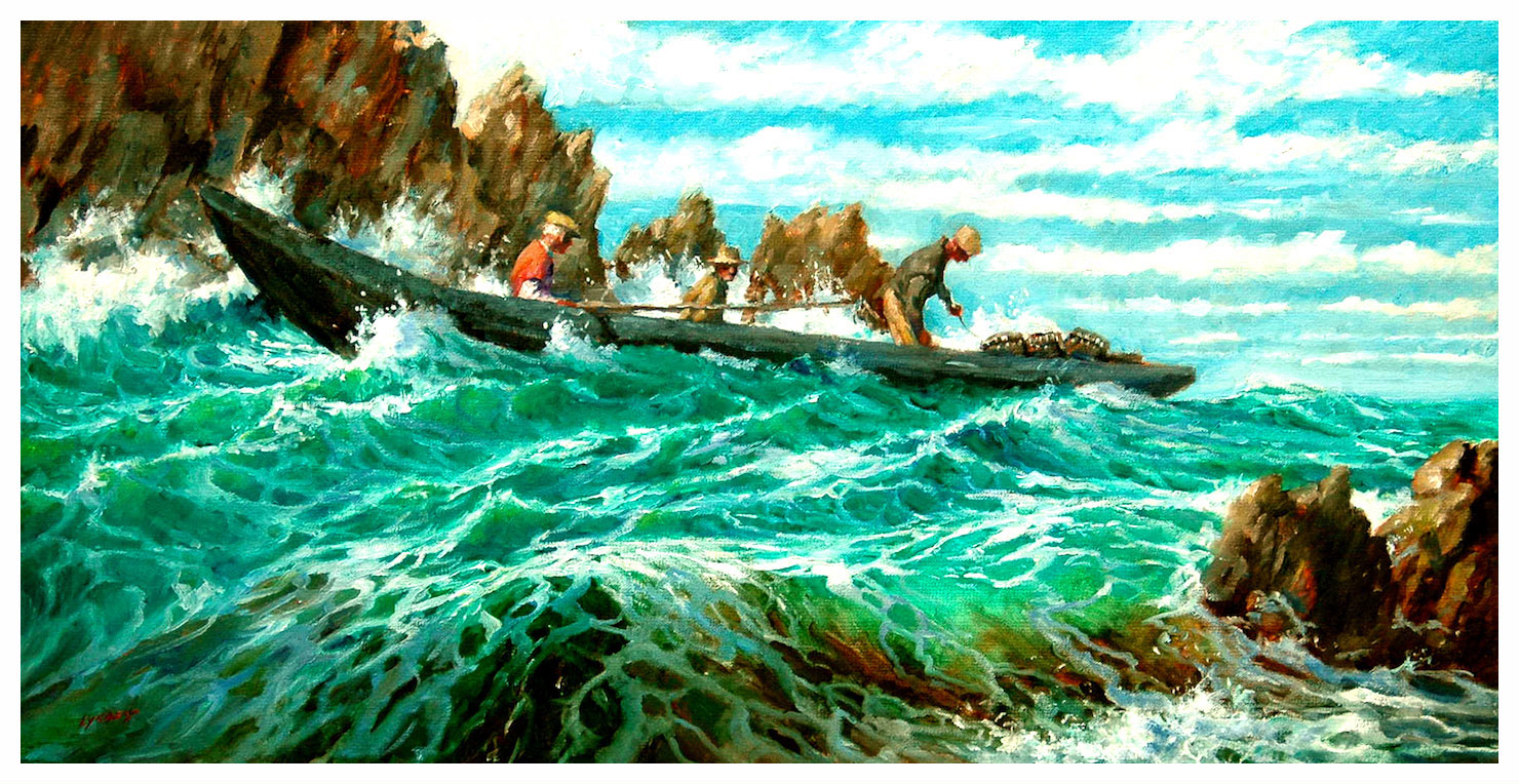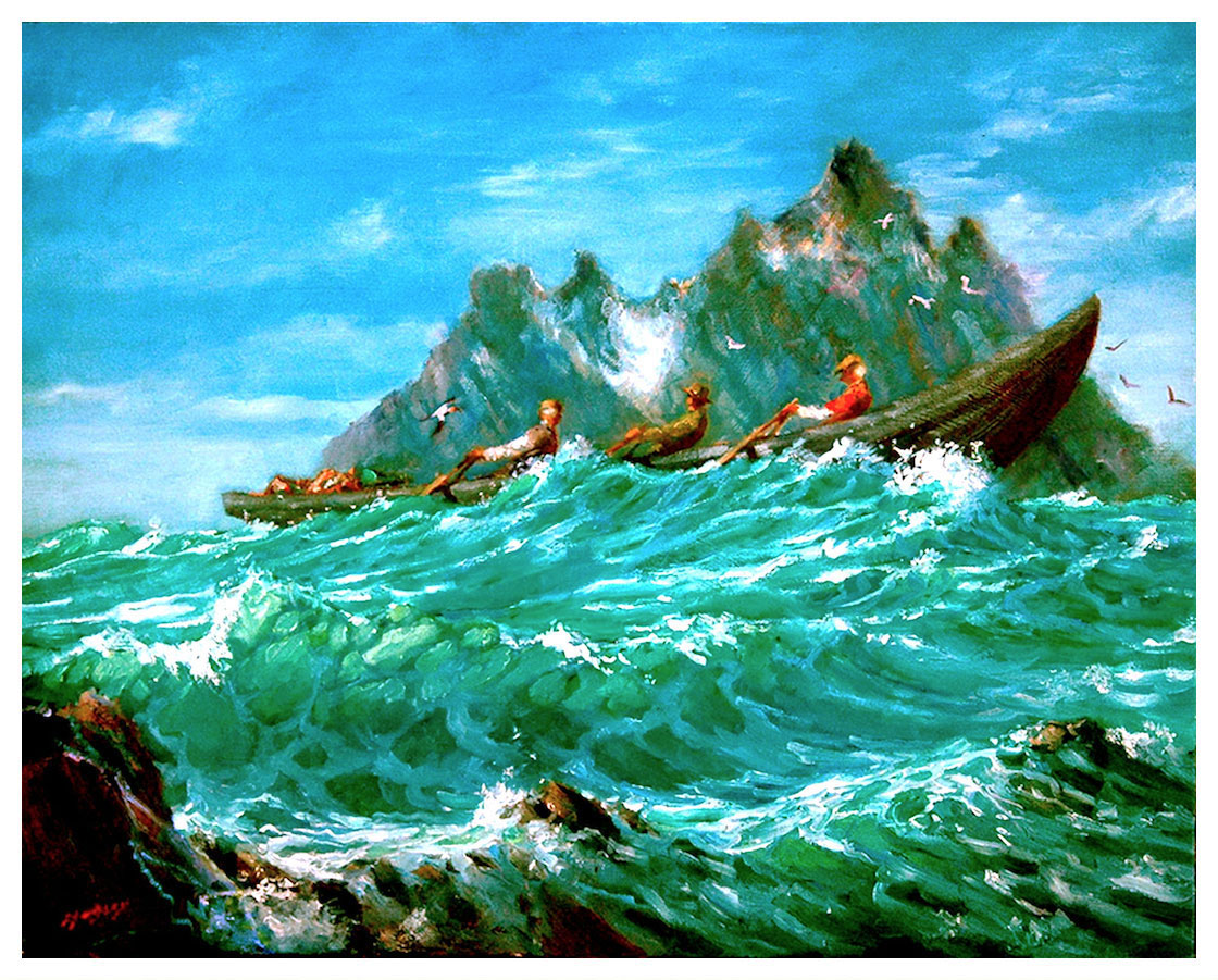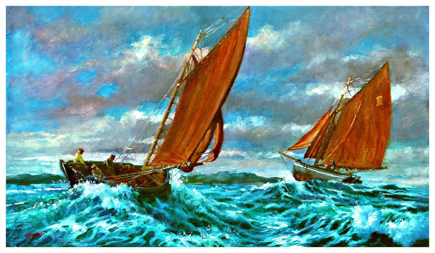 In their 'Curragh' a Tar over Canvas clad rowing boat and masters of their craft, for centuries the fishermen braved the swells, tides and rocks, around the rugged west coast. |